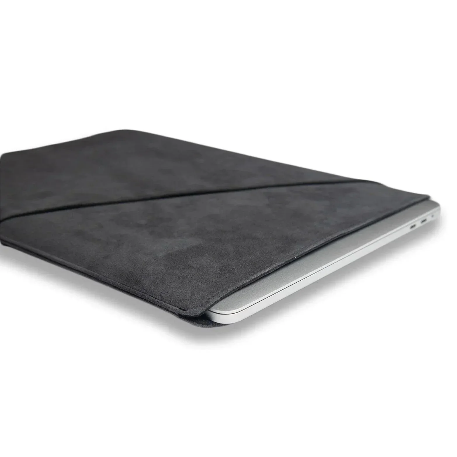 MacBook Sleeve – Alcantara Edition – A minimalist sleeve that turns everyday protection into an experience of quiet luxury. Wrapped in official Italian Alcantara®, it delivers a velvety-soft feel while shielding your MacBook from scratches, bumps, and the wear of daily life. Slim, lightweight, and unbranded, it slips easily into your bag or hand, while the magnetic top closure ensures secure carry and effortless access. Whether you're commuting, working remotely, or presenting, it brings calm clarity to your setup.
